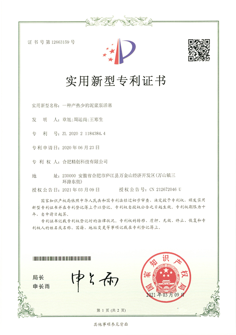 (2021實用新型)一種產(chǎn)熱少的泥漿泵活塞